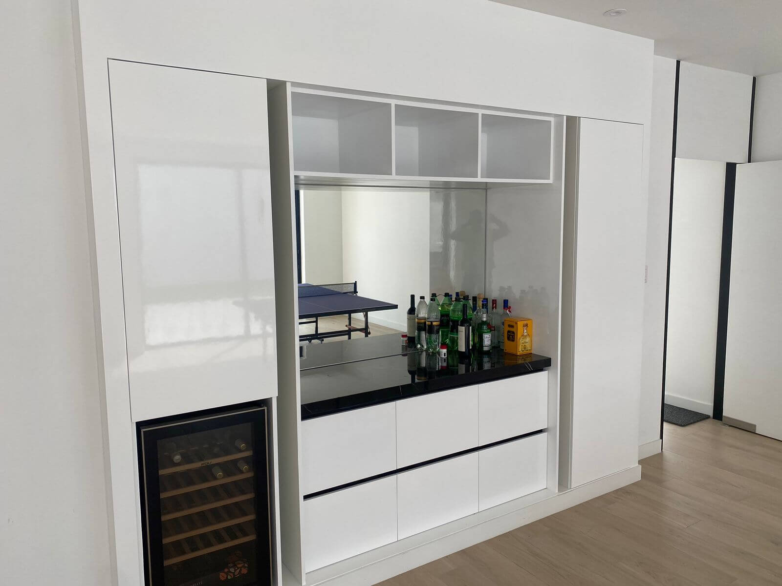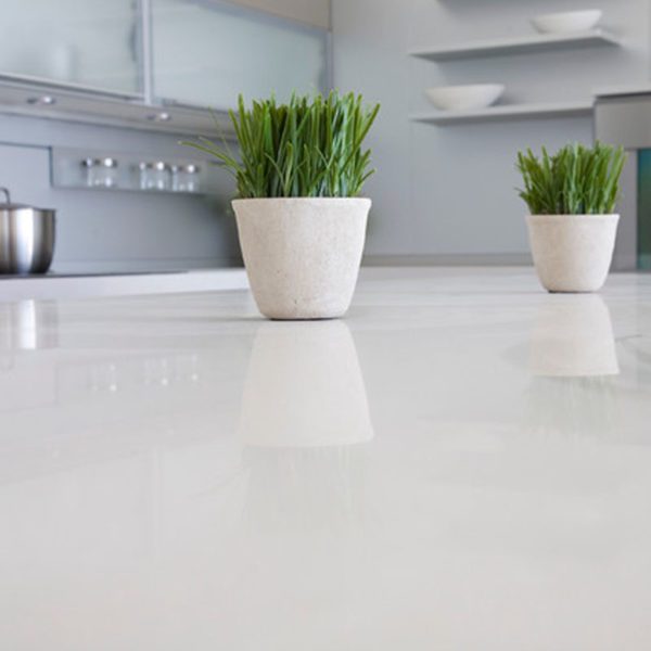 Tablero Cuarzo blanco estelar y melamina Capri y Duna
